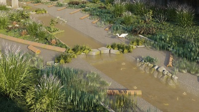 【新北市訊】新北市政府水利局再接再厲持續優化泰山區大窠坑溪水環境,二期工程已於113年1月10日開工,預計年底完工。屆時,當地居民可從一期工程半山雅公園沿新設步道至二期工程山腳里公園,體驗長達1.3公里的親水空間、通勤綠廊及休憩廣場,欣賞不同微棲地的多樣化生態空間,駐足於動植物圍繞的環境。