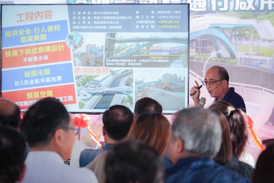 水利局長宋德仁指出,這座橋梁在設計上充分兼顧安全、防洪與生態保護。採取不落墩設計,避免阻礙水流並減少對河川生態的影響,同時將梁底高度抬高至計畫堤頂以上1公尺,確保未來堤防加高施作時仍保有足夠空間。橋體材質則選用高耐用、防腐蝕鋼材,橋面鋪設防滑地材,大幅降低後續維護成本,並提升行走安全。周邊環境同步優化,包含步道改善、綠美化植栽,不僅是一條橋,更是居民休憩、親水的友善空間。
