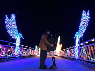 【新北市訊】西洋情人節不只談戀愛,更要走進童話。新北市政府高灘地工程管理處於新北大都會公園辰光橋推出情人節限定光雕展「童話夢境 星戀光影」,自2月14日起浪漫登場。以愛情、童話與互動體驗為主軸,結合橋體與河濱休憩空間,打造宛如星河與夢境交織的光影場景,邀請情侶、親子與好友一同感受甜蜜氛圍。