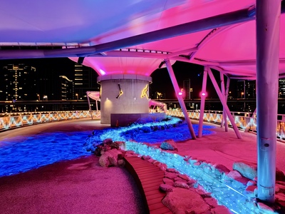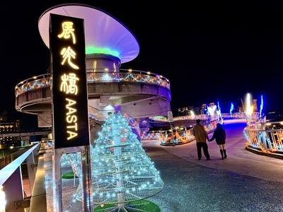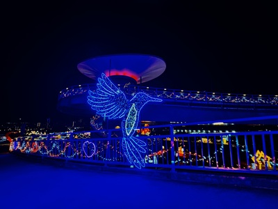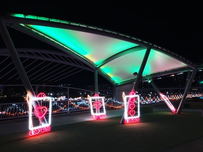 辰光橋位於三重雙捷交匯站,橋體以牛郎織女重逢意象為設計靈感,雙層雙曲線橋台宛如蜿蜒銀河,象徵跨越時空的相遇與相守。每年情人節期間,辰光橋光雕展皆與新北燈會展期相互呼應,已成為新北市夜間最具人氣的浪漫地標之一。